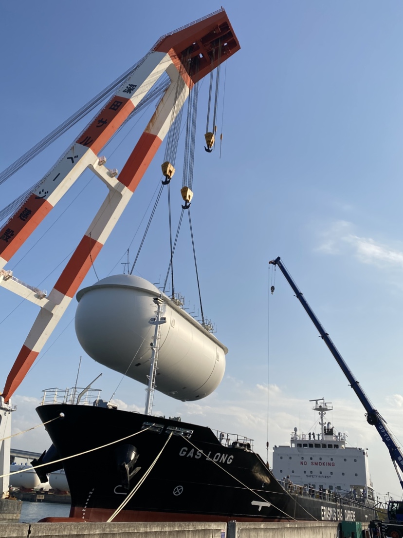 2025年12月2日及び4日 5,000cbmLPG運搬船GAS LONGに無事タンクを搭載いたしました。